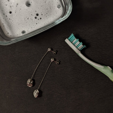 Pokud vám začne stříbro černat, nepanikařte, je to přirozená vlastnost tohoto materiálu. Na vzduchu nebo při kontaktu s potem se na stříbře může vytvořit tenká oxidační vrstva.