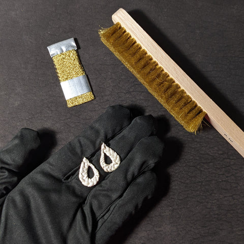 Čištění není potřeba, protože je u těchto šperků černá barva přímo vyžadována. Jediné, co se může stát je, že se černá patina ošoupe. U Tord šperků se obvykle stává, že se na povrchu šperk ošoupe na stříbrnou barvu, v záhybech vlásků černá patina zůstane a šperk se tak stane originálně prokresleným.