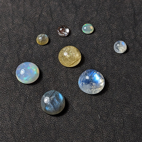Kameny, které nejčastěji používám do zásnubních prstenů, mají dva typy výbrusu. První je briliantový výbrus, který nejlépe odráží světlo a skvěle sehrává roli vznešeného průhledného kamene. Druhý typ je cabaccon neboli mugle.