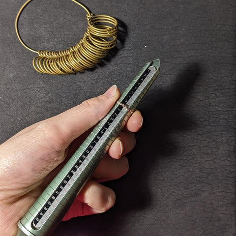 Linka velikosti na papíru musí být hezky vidět ve vnitřní straně prstenu, ale zároveň nesmí být mezi prstenem a kruhem na papíru bílý srpek. Výsledek mi pak stačí jen napsat.